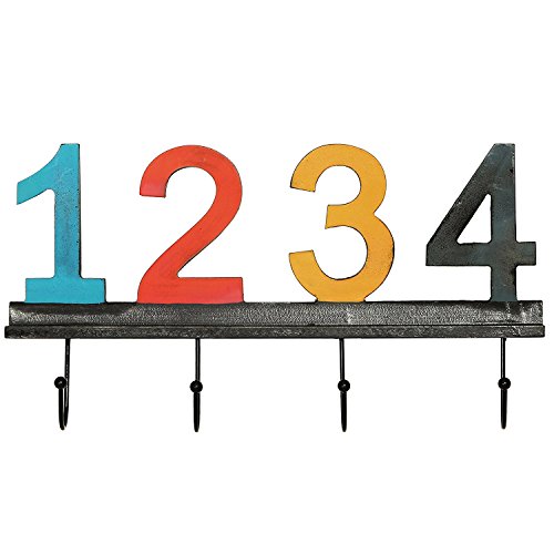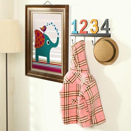Chris.W Vintage-Style Multi-Colored Wooden Wall Mounted Numbered Coat & Hat Hooks Rack Hanger w/ 4 Metal Hooks, Numbers 1,2,3,4
