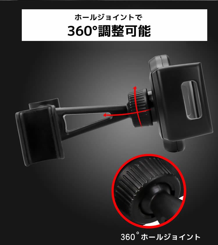 ホルダー部分が360度回転するため、タブレットを縦・横どちらにも設置可能。
