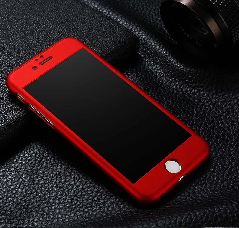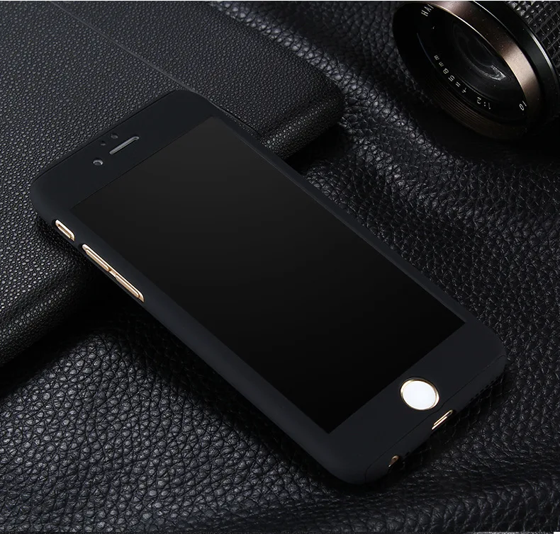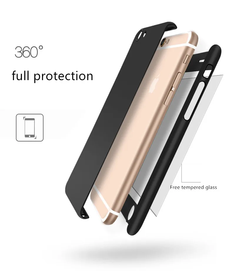 Luxury 360 Degree Full Body Protection Matte Phone Case For iPhone 6 6s 7 Plus 5 5S SE Case Cover For iPhone 6S Case + Glass Film