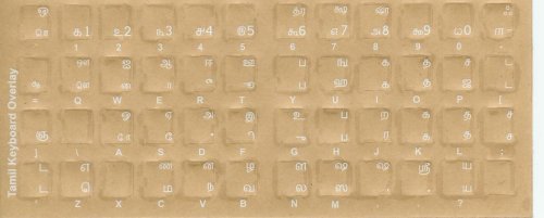 Tamil - English USB Keyboard Stickers White Characters Letters Reverse Printed (Ink on Adhesive Side) on Transparent Background (Matt Not Glossy)