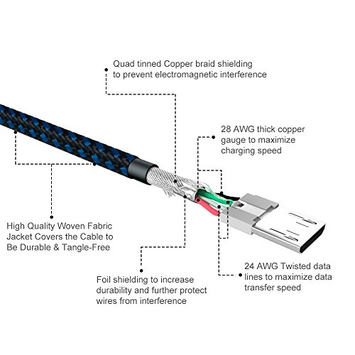 Earth wire and foil shielding added to increase its durability and to further protect the wire from interference. And the sufficient copper wires ensure its fast charging at 2.4A/2.0A Max and high speed data sync up to 480Mbps.