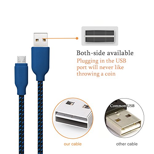 USB Cable, iOrange-E 3 Pack Reversible Cable Braided, Micro USB 2.0 High Speed Charge and Data Sync USB Charger Cable for Android, Samsung Galaxy Note 5, HTC One M8, M9 and More (Blue, Red, Purple)
