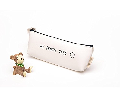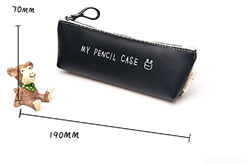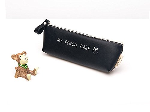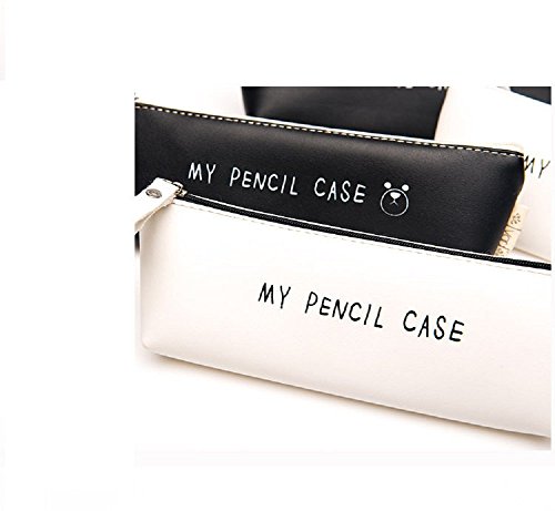 Funnylive® Classic Black and White PU Pencil Case Clean Color For Students (black)