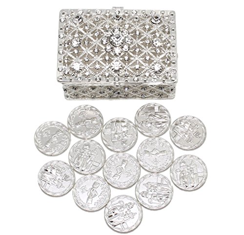 -. Binding : Kitchen -. Brand : CB Accessories -. Feature : Beautiful arras and box set, tastefully decorated with rhinestone and crystals / The set includes 13 coins ¾ inch in diameter (about the size of a US dime) all with the same design / The keepsake measures 2 1/2 inches by 1 ¾ inches by 1 ¼ inches tall with hinged lid and magnetic closure for security / The full set comes nicely packed in satin lined CB Accessories white gift box / This is a unique set used during wedding ceremonies or as a gift for newly weds to ensure prosperity in life -. IsAutographed : 0 -. PackageQuantity : 1 -. ProductGroup : Home -. ProductTypeName : HOME -. Title : Wedding Unity Coin Set - Arras de Boda - Chest Box and Decorative Rhinestone Crystals Keepsake