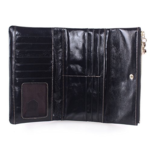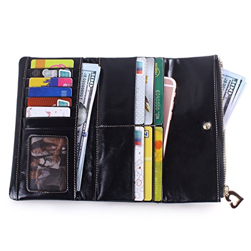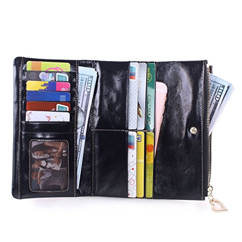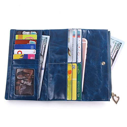 -. Feature : We use the oil wax leather for this wallet,oil wax cowhide is made of top layer leather,please check the Product Description,we will offer you a detailed briefing about oil wax cowhide. Fully lined interior includes inside pocket, Shiny heavy-duty light gold hardware and detailed stitching matches the wallet color. The whole bag made of soft leather, and handmade. Multi-storey fold is designed for easy taking things with or out. / This large capacity wallet with 12 Credit card slots and 1 photo slot, 2 full-length compartments for your cash and bills, 2 zipper pockets for your Iphone6, coins and change, can also put bills and cash in it. Simple and fashion design, Zipper & button closure designed for the safety of your properties. / Features: the wallet appearance concise and atmosphere, powerful at the same time, good partner for traveling, dating and working. We have 6 colors,all kind of colors are beautiful and gorgeous,you can choose any color you like,must have one color fit you most. And it is also a great gift for family and friends. / Product dimensions: (L)7.09" x (W)0.98" x (H)3.54" inches, and the weight is 4.59 ounces. / *Attention:AINIMOER is an US registered trademark,unauthorized sale without permission,we will investigated for legal responsibility.