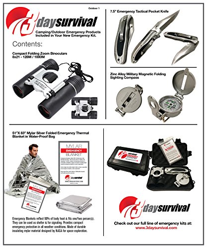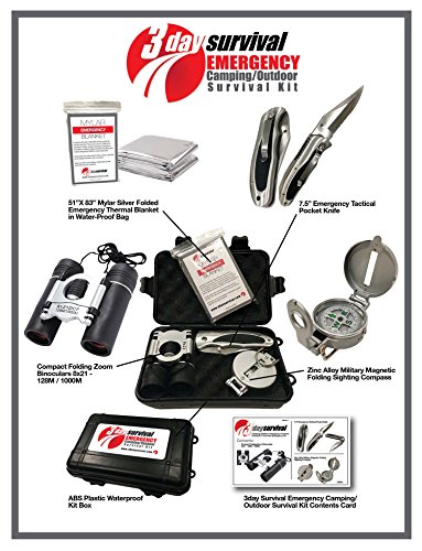 Camping Survival Kit With Engineer's Compass, Convenient sized Binoculars, Stainless Tactical Knife and Mylar Blanket