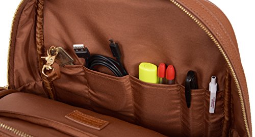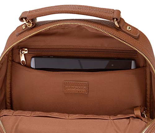 The Renwick pebble grain leather backpack is a testament to simple style. This little bag packs an organizational punch: inside its padded main compartment is an RFID-safe pocket for all of your valuables, plus a set of unique mini-pockets for smaller supplies such as wires and pencils. A small interior pocket is meant to keep small electronics safe, while the bag itself is large enough to fit a laptop or tablet comfortably. Furthermore, the genuine leather exterior features an easy-access front pocket for items that you need on the go. Thoughtfully-placed gold accents make this bag a real stunner.Feature