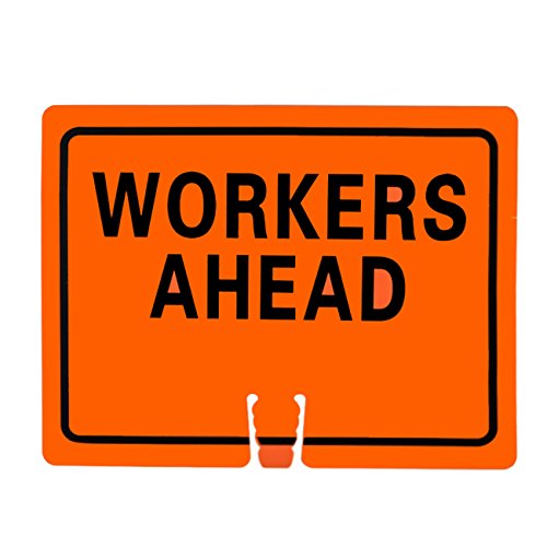 RK Traffic Cone Sign 26 Legend "Workers Ahead", 18" Width x 14" Height, Black on Orange