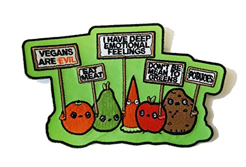 Funny Vegetables w/Protest Signs Against Vegans - Novelty Iron On Patch Applique