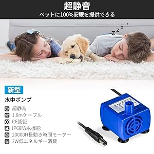 【YOUTHINK自動給水器専用ポンプ】このウォーターポンプはYOUTHINK自動給水器専用のポンプです。長時間給水器を使ったり、何か環境の原因で自動給水器の水があまりでなくなったりするときに、ポンプを交換する必要があります。12Vのポンプで最初の動力をご提供いただけます。同じ仕樣の商品に使いたい場合は元のポンプのサイズと比較してください 【超静音設計】超静音設計の水中ポンプですので、夜でも20,000時間以上の超低ノイズ働くことができます。水の音がほぼ聞こえませんので、夜のお休みの邪魔にもなりません。 ほかの使用場所:水槽、水族館、噴水、魚の池、魚介類の養殖場など水循環や流れ調節が必要な所です 【低エネルギー】低エネルギー技術が使用されており、1月1.5KWの低消費電力を実現しました。給水ポンプのACアダプターには電気機器の安全規格を表すCEマークを取得しています。ご安心して使用いただけます 【しっかり固定でき】こちらの水中ポンプの底に固定吸盤がありますのでしっかり固定できます。YOUTHINK自動給水器と同じ仕樣でご安心ください 【パッケージ内容】水中ポンプ*1。詳細サイズはページの写真にあります。ご参考ください。また何か質問がありましたらお気軽にお問い合わせ下さい
