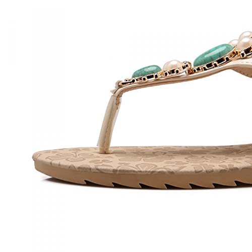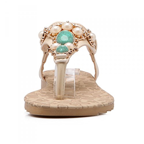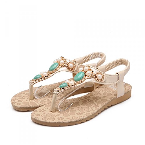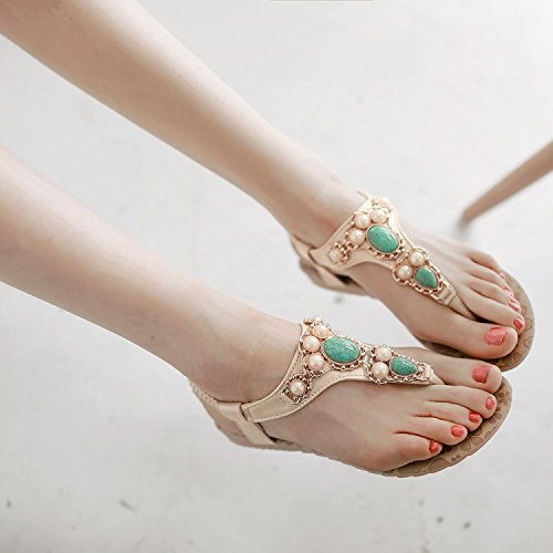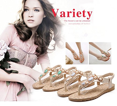 -. Title : Women Bohemia Style Sandals Flower Beads T-Strap Flip Flop Flats Slip On Thong Refreshing Shoes