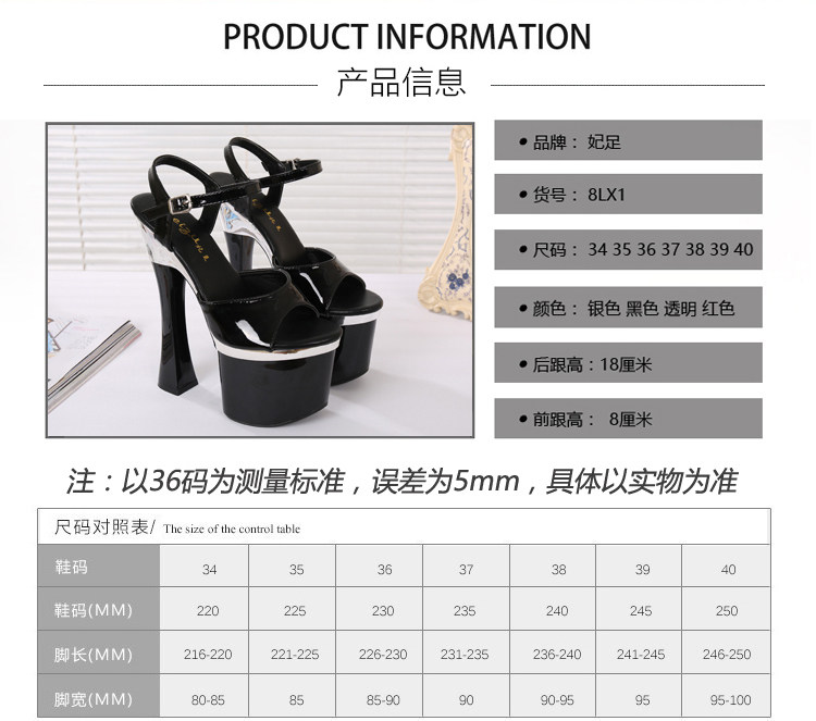 ※ヒールの高さ:18cm(0.5-1cmの誤差があります、予めご了承してください。)