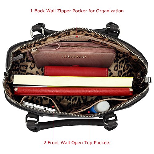 MAIN FEATURES: Premium Vegan Leather, polished light gold accessories,Flat Bottom with Protective Bottom Feet! , Fully-Lined Fabric Interior, The clam shell style opening(Zipper Around Closure) that makes this Handbag easier to grab class documents. It extends all the way down both sides to allow a wide opening and easy access to the contents.