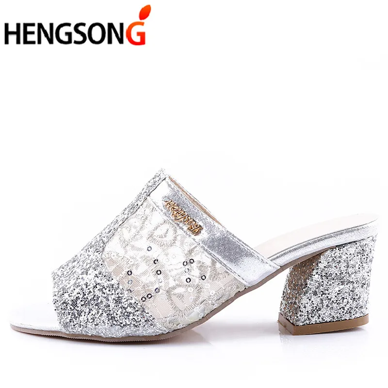 Thick Heel Sandals:Women Mesh Slippers