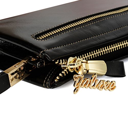 -. Title : YALUXE Women's Large Capacity Luxury Wax Genuine Leather Wristlet Wallet With Zipper Pocket