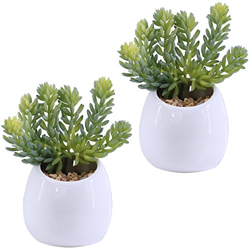 Supla 2 Pcs Real Looking Plant Fake succulent Faux Succulent Plant Artificial Succulent Picks Faux Dessert Plant in white Green 7" tall