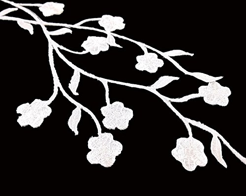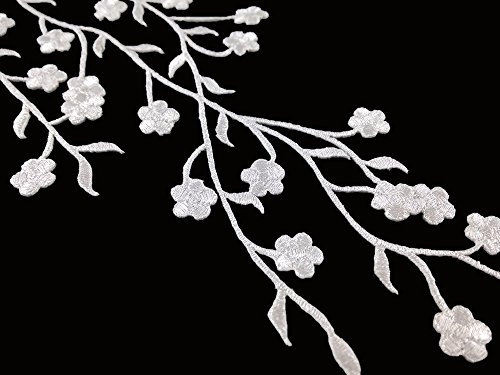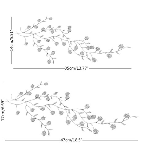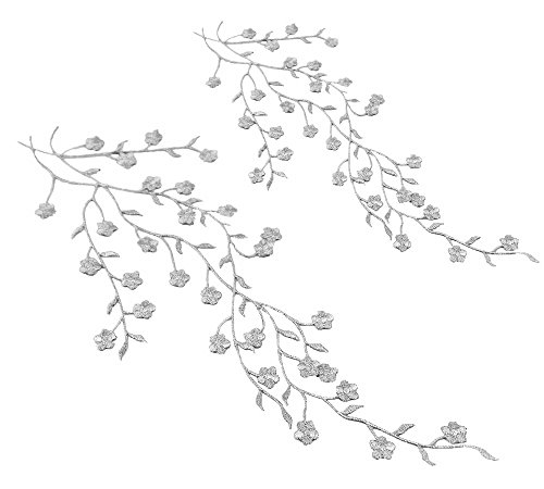 Honbay 2pcs Big and Small Plum Blossom Flower Leaf Vines Iron on Embroidery Applique Patch (Silver)