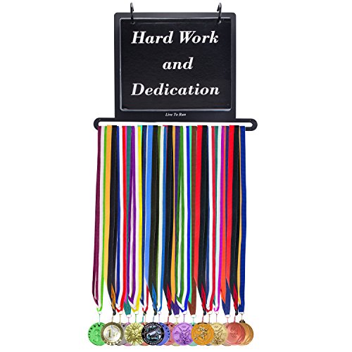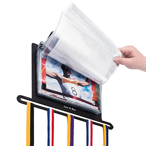 Live to Run - Race Bib and Medal Holder Display Hanger - Wall Mounting Kit- up to 40 FREE Bib/photo bags included – Displays 25 Race Medals and 80 Race Bibs