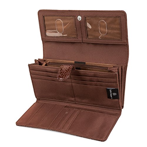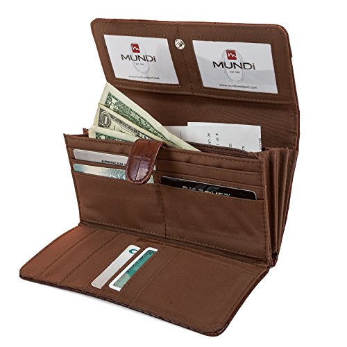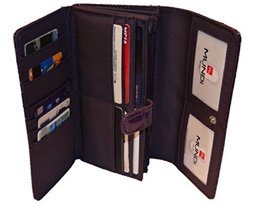 -. Binding : Apparel -. Brand : Mundi -. ClothingSize : One Size -. Department : womens -. Feature : STYLISH BEAUTIFUL WOMENS WALLET ORGANIZER - With a stylish and detailed Crocodile Pattern this wallet has a great design look and feel and as well as being functional and keeping you organized / LOTS OF STORAGE - The interior of this women's clutch features 9 credit card pockets, 3 oversize credit card slots, 2 interior ID windows and 2 additional large pockets / INTERIOR FILING SYSTEM - The interior of this womens wallet features 3 large pouches that are labeled; Coupons, Receipts and Cash keeping all your valuable organized with enough space to hold your checkbook / ZIP AROUND INTERIOR POCKET - Inside the Mundi File Master there is an additional interior zipper pouch to store any additional valuable items / EXTRA CHANGE STORAGE - The back exterior of the file master womens clutch features a zipper coin pocket large enough to store all your loose change and coins -. Model : L30136_A -. PackageQuantity : 1 -. ProductGroup : Apparel -. ProductTypeName : ACCESSORY -. Size : One Size -. Title : MUNDI File Master Crocodile Pattern Womens Wallet Clutch Organizer Zip Around