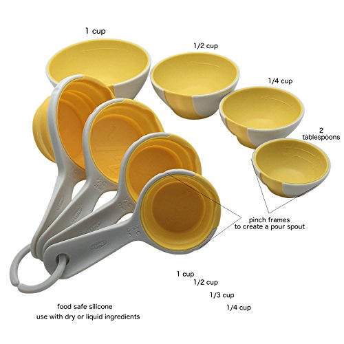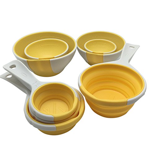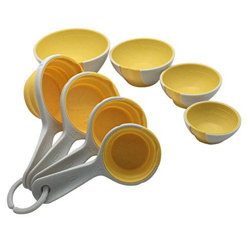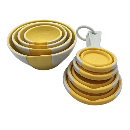 Chef'n SleekStor Pinch And Pour Set - 4 Prep Bowls, 4 Collapsible Measuring Cups - Lemon