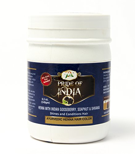 -. Binding : Misc. -. Brand : P.R.Ide Of India -. Feature : 100% Natural & Pure Henna & Indigo Leaf Powder -. Label : P.R.Ide Of India -. Manufacturer : P.R.Ide Of India -. ProductGroup : Beauty -. ProductTypeName : BEAUTY -. Publisher : P.R.Ide Of India -. Size : 8.5 Ounces -. Studio : P.R.Ide Of India -. Title : P.R.Ide Of India - Herbal Hair Color Powders, 240grams (8.5oz)