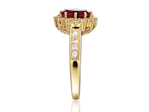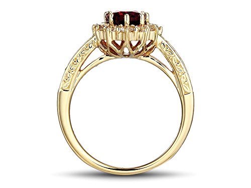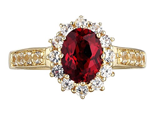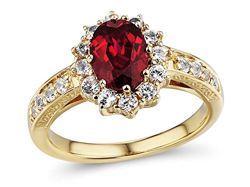 -. Binding : Jewelry -. Brand : Diamond Classic Jewelry -. Department : womens -. Feature : Fabulous Lab Created Ruby and White Sapphire Ring / 8x6 Oval Lab Created Ruby / 20 Round Lab Created White Sapphire in Halo and Shank / Side View has Lovely Filigree Engraving / 10k Yellow Gold -. ProductGroup : Jewelry -. ProductTypeName : FASHIONRING -. Title : Lab Created Ruby and White Sapphire Halo Ring in 10k Yellow Gold