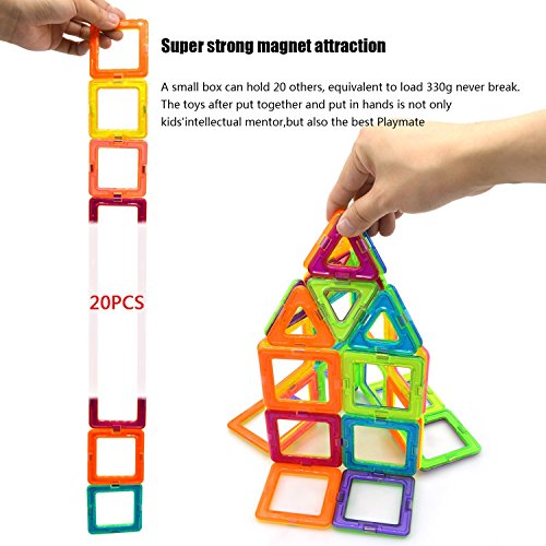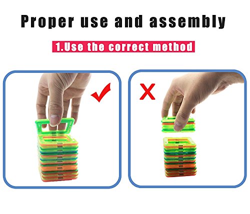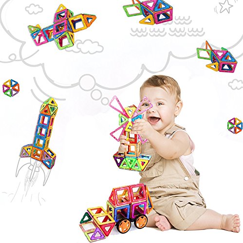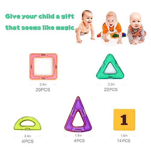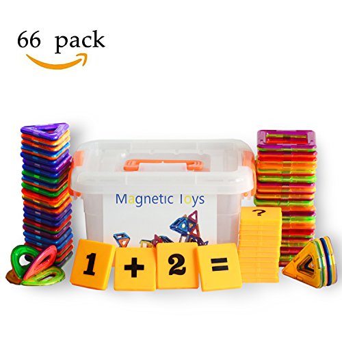 A set of 66 piece magnetic tiles designs that appeal to boys and girls of ages over 3-year-old, easy to recognize, and its magnetism makes it very easy to be connected with other shapes. That ensures development of kids' cognitive skills, fine motoring skills, hand-eye coordination, and social skills.