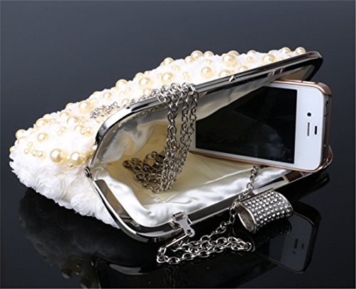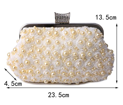 Product Description An exceptional style to elevate your entire ensemble, Nodykka frame bead evening clutch handbag! The velvet fabric material with lift lock closure and beaded and rhinestone detail is really an accent to your dressy outfit for dinner or brunch and bride's outfits. The main compartment holds your keys, wallet, sunglasses,phone, keys, lipstick, comb or small cosmetic case, credit or id cards, some cashes or your smaller essentials for easy access Detail Color:White/Beige/Champagne Carrying Option: Detachable metal chain shoulder strap(120 cm/47.2 inch) Occasion: Wedding/Cocktail Party/Evening/Prom/Graduation Please note, the hardware color and interior lining may differ from the color shown in the photo.