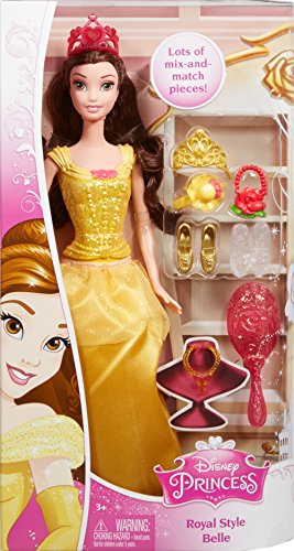 Comes with a royal purse, multiple pairs of shoes, a necklace, a brush and a tiara to dress her up in fairy tale finest