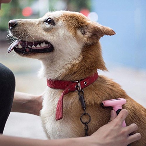 Feature: Non-slip rubber of handle provides a good sense of gripping Innovative grooming tool for short and long haired dogs and cats Leaves a shiny and healthy topcoat; comfortable, ergonomic grip handle Handle part is made from TPR and PP, environmental protection material, will not cause skin allergies Quickly and easily remove loose hair, especially thick undercoats. Great for detangling and dematting