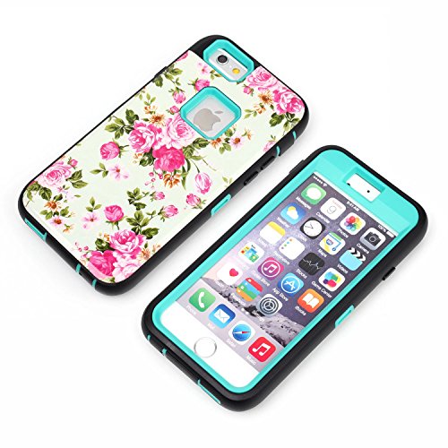 iphone 6s Case, CexCob Vintage Floral Flower Printed [Shockproof 3 in 1 Hybrid] Silicone TPU & Hard Plastic Combo High Impact Shiled Phone Case Cover for Apple iphone 6s / 6, Mint