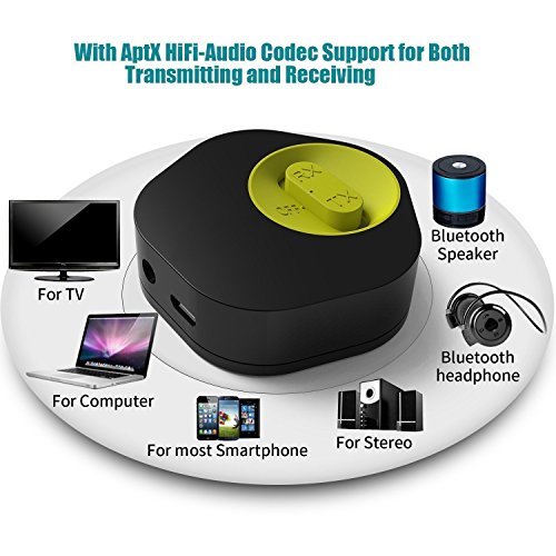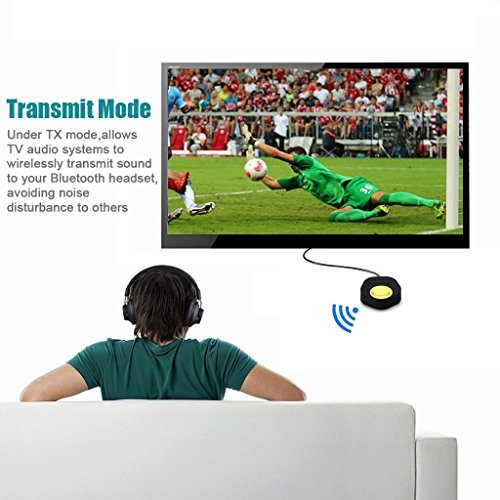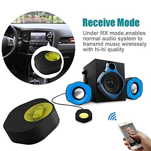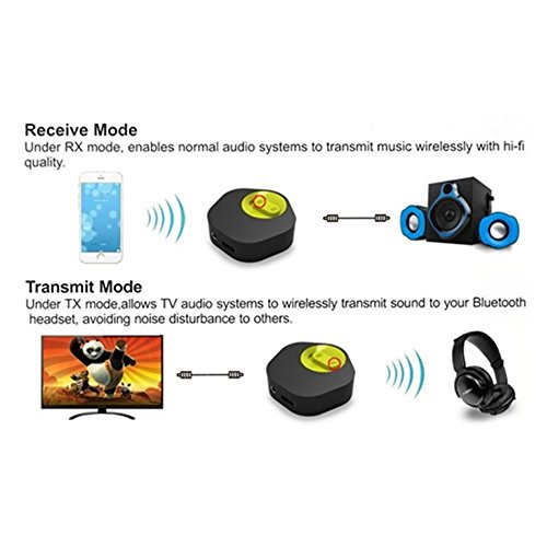 2-In-1 Bluetooth Transmitter & Receiver: transmitter mode (TX) can turn a non-Bluetooth device (TV, PC, CD player, MP3 / MP4) into a Bluetooth transmitter while pairing with Bluetooth stereo, receiver mode (RX) enables normal audio system to transmit music wirelessly with hi-fi quality to no-Bluetooth devices