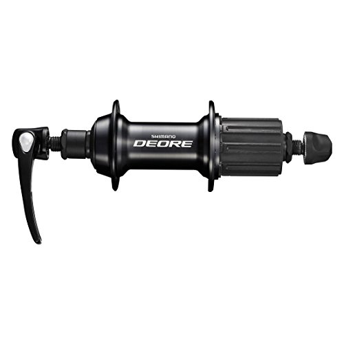 - SHIMANO DEORE FH-T610 rear bike wheel hub - Alloy - O-ring seal - greased internally - cup-and-cone bearing - Smooth running: polished bearing surface with Borozon-cover - Quick release skewer - 32 holes - suitable for 8/9/10-speed cassette - 7-speed also available (not included) - Colour: black - Weight: 365g - 135mm 0