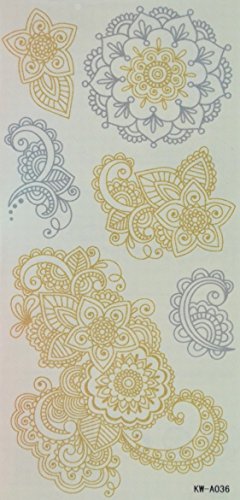 GGSELL Indian and Middle Easten flowers Golden and Silver glitter temporary tattoos