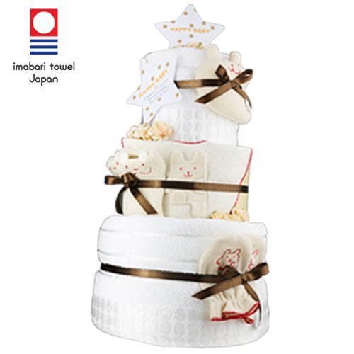 -. Title : 今治おむつケーキ 豪華3段 ウォッシュ&バスタオル付き 白銀 オーガニックアイテム4点付【出産祝い/内祝い】日本製