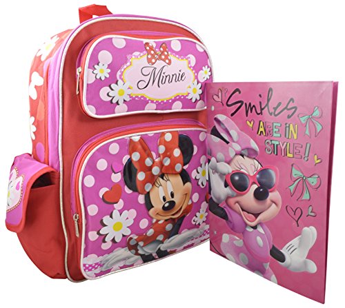 -. Brand : Disney -. Color : Pink -. Department : girls -. EAN : 0708325404229 -. Feature : Brilliant colors for dazzling design for sparkly characters. / Sparkly design! perfect for school and vacations! Well known character that your child will love having with them. The perfect set all year round! / Features one Main Compartment, two front pockets with zipper access and one side flap pocket and one net pocket. Backpack Dimensions (in inches): 16 x 12 x 4.5 / Comes with matching Bonus Pocket folder. / Made of an easy to clean and very durable 100% polyester -. PackageQuantity : 2 -. ProductGroup : Apparel -. ProductTypeName : LAGE -. Size : Large -. Title : Disney Minnie Mouse Deluxe Girls' Large 16" Backpack w/ Bonus Pocket Folder New -. UPC : 708325404229