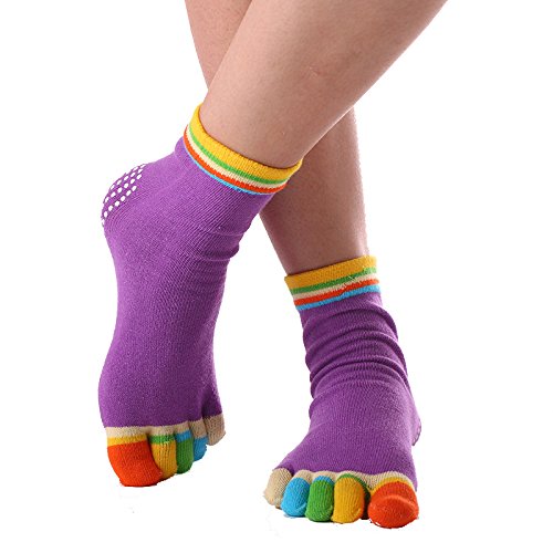 -. Title : 5 Toes Socks Separator Cotton Rainbow with Grips for Yoga Pilates Assorted Color