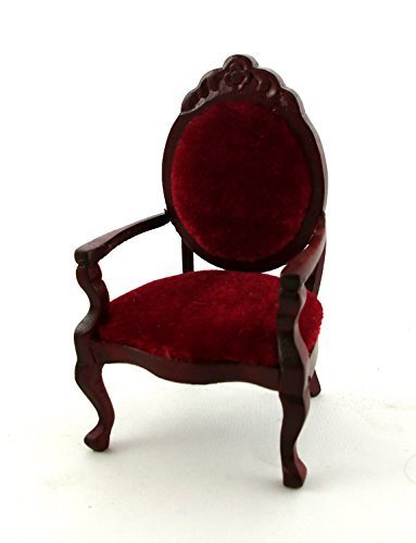 -. Title : Dollhouse Miniature 1:12 Scale Mahogany and RED Mirrorback Armchair #T3593
