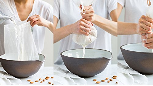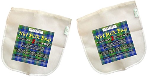 NUT MILK BAGS - 2 LARGE 12"X12" - REUSABLE COMMERCIAL GRADE FINE NYLON MESH - PULP FREE ALMOND MILK - TEA AND COLD BREW COFFEE FILTER - JUICE AND YOGURT STRAINER - CHEESECLOTH QUALITY - AND MORE