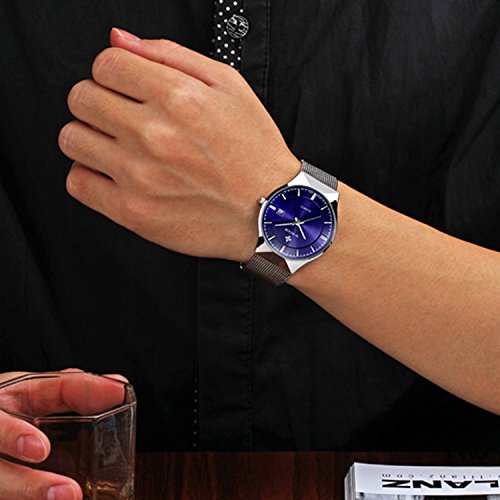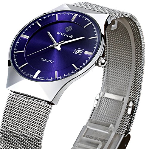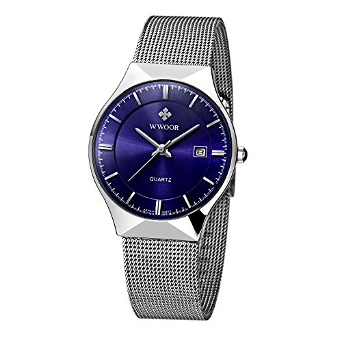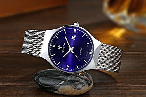 -. Title : WWOOR 腕時計 ラウンドスリム 薄型 ビジネス クォーツ時計 防水 男性 青色