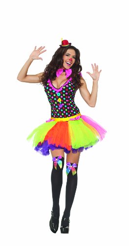 -. Binding : Apparel -. Brand : Party King -. Department : womens -. Feature : Voodoo doll dress and striped arm warmers included / Hosiery and wig not included / Patches and stitching detail -. Genre : Classic -. Label : Party King -. Manufacturer : Party King -. PackageQuantity : 1 -. ProductGroup : Apparel -. ProductTypeName : ADULT_COSTUME -. Publisher : Party King -. Studio : Party King -. Title : Party King Clowning Around Women's Costume