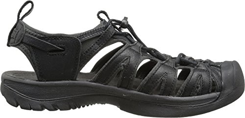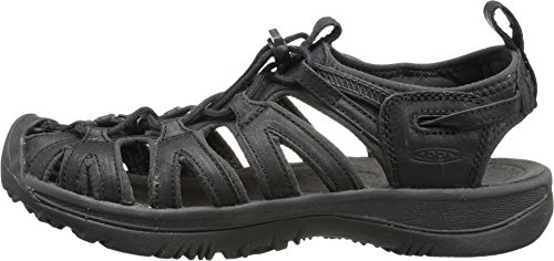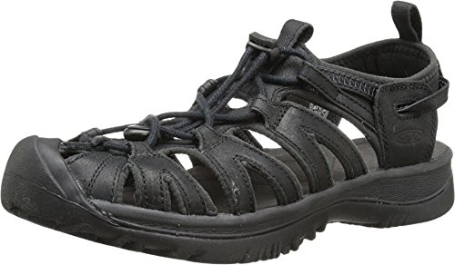 Comfort takes new meaning in the KEEN Whisper Leather sandal. The supple leather upper features straps designed to fit anatomically with your foot; a quick-draw elastic cord lacing system lends a snug fit. The hydrophobic mesh lining provides water resistance, while the antimicrobial Aegis� Microbe Shield fights odor. A metatomical EVA footbed offers long-lasting comfort, while a textured and non-marking rubber outsole provides traction on a variety of surfaces.Feature