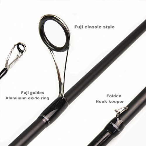Ultra lightweight and super-sensitive, very strong based on the "TORAY" high modulus carbon fiber made in Japan. The high quality Fuji guides with aluminum oxide ring, it is the classic style. The Fuji VSS reel seat with glossy black finish, super nice design on the front of the fore hood, very smooth and amazing. The cork from Portugal makes the rod have good hand feeling.