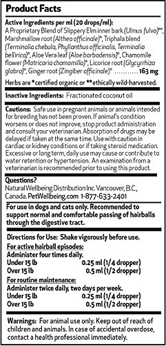 -. Binding : Misc. -. Brand : Pet Wellbeing -. EAN : 0661822000243 -. Feature : Certified organic: This formula is entirely prepared from organically grown herbs. / Hairball Gold is a natural liquid intended to help your feline manage hairballs. Plant-based ingredients high in mucilage content (naturally viscous) are combined with other herbs that assist normal elimination through the bowels and help the stomach feel comfortable. / Supports normal & comfortable hairball management. / All natural lubricating ingredients For acute episodes and regular maintenance / Petroleum-free formula. No mineral oil. -. Label : Pet Wellbeing -. Manufacturer : Pet Wellbeing -. MPN : PW 0024C -. PackageQuantity : 1 -. PartNumber : PW 0024C -. ProductGroup : Pet Products -. ProductTypeName : PET_SUPPLIES -. Publisher : Pet Wellbeing -. Studio : Pet Wellbeing -. Title : Pet Wellbeing - Hairball Gold for Cats - Natural Hairball Management for Cats - 2oz (59ml) -. UPC : 661822000243