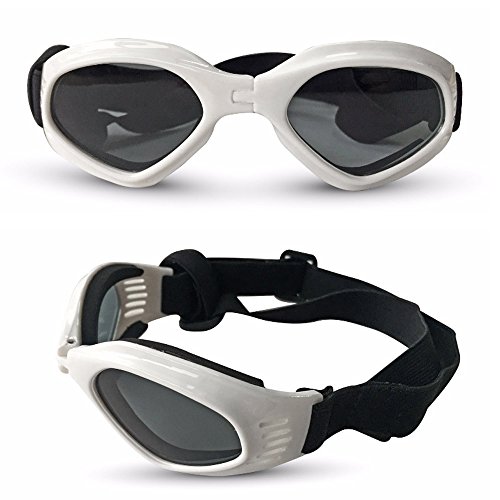 Studio : CAZZO Publisher : CAZZO Binding : Misc. Product Description Protect your lovable pup from the harmful ultraviolet rays of the sun with these stylish doggy goggles for small breeds! Whether its a ride with the window down or for a casual stroll keep your dogs eyes protected from debris. All sunglasses have an adjustable strap to easily customize the proper size for your dog. Each pair of sunglasses is wrapped in a clear rectangular plastic case so you can reuse it as storage. Specification: Material: Plastic Size: 7.9"* 2.2" Weight: 1.5 oz Color: Blue, Pink, White, Black,Yellow Features: - Super NICE fashion handsome dog wind and water-proof glasses - Can wear in four seasons,let the baby have super high - Prevent the dog have all kinds of eye diseases Suitable for: Pet dogs,all types of working dogs,police dogs, search and rescue dogs, quarantine dogs, guide dogs, drug-sniffing dogs, guard dogs, guard dogs, working dogs domains such as subway security dogs. Package Included: 1x pet sunglasses