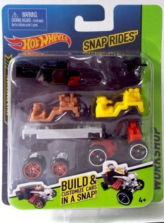 -. Feature : Snap Ride Custom BONE SHAKER Car Kit / Create customized Hot Wheels & Race on tracks / Includes a variety of body parts, wheels, accessories and decals--that combine in a snap! / Compatible with other Snap Rides vehicles for imaginative combinations / Connects to other Hot Wheels track sets & Create multiple variations.
