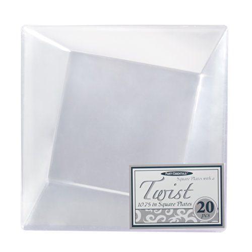 Party Essentials 20-Count Hard Plastic 10.75" Twisted Square Dinner Plates, Clear