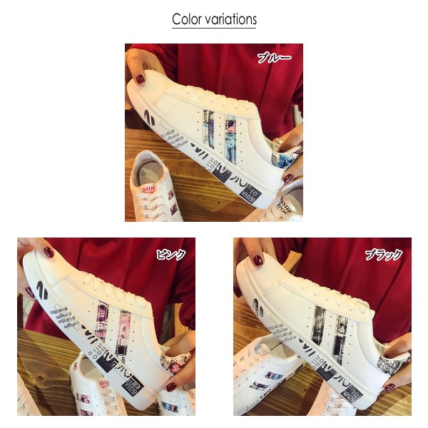 | 商品説明 | ※こちらの商品(靴)は箱入りではなく簡易梱包での発送となります。 コラージュ 2本ライン フラットスニーカー♪ ローカットのカジュアルなスニーカーです。 個性的なコラージュ風イラストで注目度もアップ♪ |
