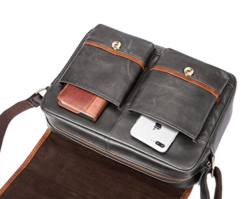 Features: Material: Genuine Leather Size: 34cm(length)*9cm(thickness)*23cm(height) / 13.4*3.5*9.0 inch Front/main/rear pocket organization for all of your business needs Usage: Shoulder crossbody bag, messenger bag, briefcase A full flap fold over with two magnetic snaps to hold it shut It is perfect for students, business professionals or travelers want to make a fashion statement