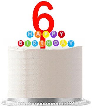 Item#006WCD - Happy 6th Birthday Party Red Cake Topper & Rainbow Candle Stand Elegant Cake Decoration Topper Kit